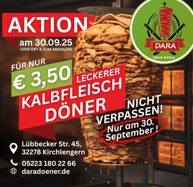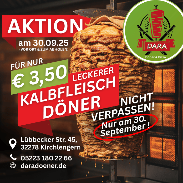 Willkommen bei Dara Döner & Pizza, Ihrem Ziel für frische Döner, köstliche Pizzen und mehr in Kirchlengern.